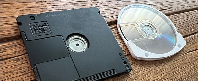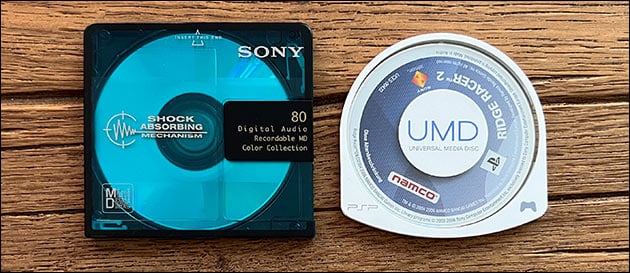 Zwei Technologien von Sonys Speichermedien: MiniDisk und UMD