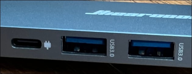 Links: USB-C Anschluss. Rechts: 2x USB-A Anschluss mit USB 3