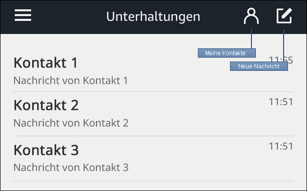Hier werden, wie bei dem WhatsApp Messenger und anderen Programmen, dann die letzten Chats oder Anrufe angezeigt, außerdem kann man seine Kontakte ansehen und diese anrufen oder ihnen Nachrichten schicken: