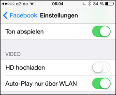Unter „Facebook“ lässt sich beim Punkt Video die Option „Auto-Play nur über WLAN“ aktivieren: Umsonst starten die Videos dann nicht mehr automatisch. Auch unter Android lässt sich diese Option, mit der die Videos nicht mehr über das Handy-Netz gestartet werden, in den „Allgemeinen Einstellungen“ aktivieren.