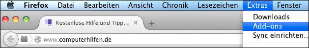 Add-ons deinstallieren: Mac OS und ältere Firefox-Version für Windows