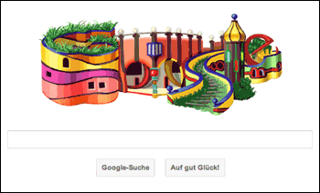 Zum 83. Geburtstag des österreichischen Künstlers Friedensreich Hundertwasser hat Google ihm zu Ehren das Firmenlogo gegen ein spezielles Hundertwasser-Doodle getauscht. Hundertwasser wurde 1928 als Friedrich Stowasser geboren – Sto steht laut Wikipedia in vielen slawischen Sprachen für Hundert. Er starb am 19. Februar 2000 an Bord der Queen Elizabeth 2.