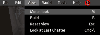 Der Mouse-View lässt sich über das View-Menü starten und dann durch drücken der ESC Taste wieder beenden. Einmal aktiv, bewegt sich das Sichtfeld mit der Maus, so kann man sich schnell umschauen oder sich einen Überblick über die nächste Umgebung machen.