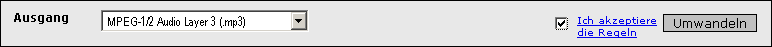Dafür muss zuerst die Eingangsdatei (Bild 1) und dann, unterhalb der Werbeanzeigen, das gewünschte Ausgangsformat (Bild 2) gewählt werden.