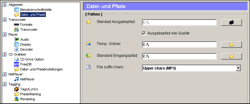 Nach der Installation wird im Menü der „Transcoder“ ausgewählt. Die Sprache kann übrigens unter Einstellungen / Language auf Deutsch gestellt werden. Dann können per Drag & Drop oder über „Dateien hinzufügen“ Audio-Dateien in die Liste aufgenommen werden. Mp3 ist das Standard Ausgabeformat. Soll eine Mp3-Datei umgewandelt werden, kann das Zielformat im Dropdown-Menü ganz einfach geändert werden (Bild 4).