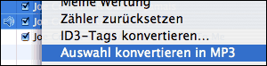 Dies funktioniert alternativ auch mit dem Kontextmenü: Sind die Lieder ausgewählt, lassen sie sich per Klick mit der rechten Maustaste direkt in das voreingestellte Format umwandeln.