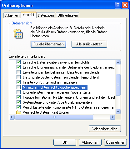 Thumbs.db: Miniaturansichten aktivieren und deaktivieren
