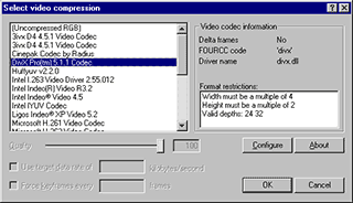 Im Menü „Video / Compression“ einen Codec wählen, z.B. DivX Pro: