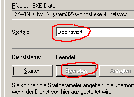 Unter Windows 98 / ME lässt sich der Dienst nicht allein deaktivieren, besteht aber kein lokales Netzwerk, können Sie in den Netzwerkeigenschaften die „Datei und Druckerfreigabe für Microsoft Netzwerke“ entfernen.