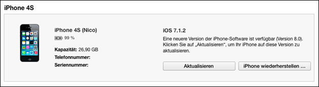 Installiert man das Update aber über iTunes, wird gar nicht so viel freier Speicher benötigt: Hier wird das neue iOS 8 zunächst auf den Computer geladen, dann nur noch das eigentliche Update auf das Gerät geladen – und das sind dann meist nur noch knapp 1GB, die man für das neue System auf iPhone, iPad oder iPod Touch freimachen muss. Zum Laden des Updates muss iPhone oder iPad mit einem PC oder Mac verbunden werden, man braucht außerdem die neueste iTunes Version von der Apple-Webseite.