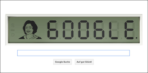 Heute ehrt Google das indische Zahlengenie Shakuntala Devi mit einem besonderen Doodle: Das Bild zu ihrem 84. Geburtstag, dass die LCD Anzeige eines Taschenrechners, der nach dem Start schließlich die Google Buchstaben zeigt, soll daran erinnern, dass Shakuntala Devi schneller rechnen konnte als ein Computer. In einem Test 1977 errechnete sie die 23. Wurzel aus einer Zahl mit 201 Stellen in nur 50 Sekunden – das war für die Zeit schneller als ein Computer und brachte ihr einen Platz in dem Guiness Buch der Rekorde ein. Der Computer brauchte mit 62 Sekunden ganze 12 Sekunden länger für die Berechnung.